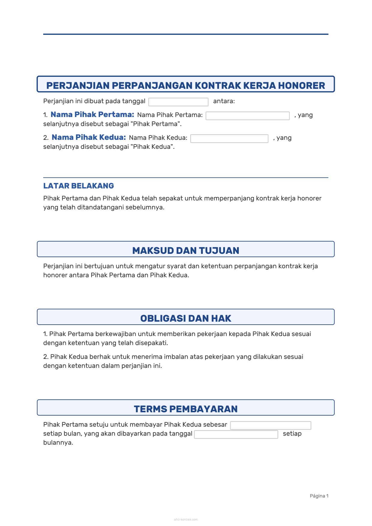 Contoh Surat Permohonan Perpanjangan Kontrak Kerja Honorer